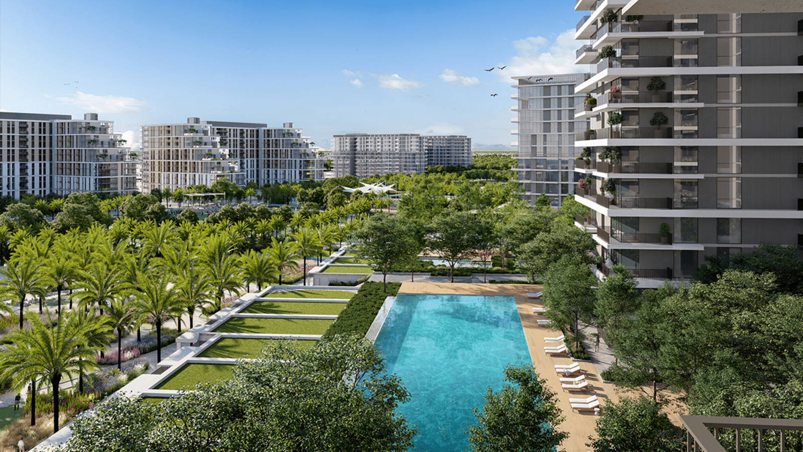 Palace Residences(パレス・レジデンス)は、名前の通り、パレス ホテルズ&リゾーツと協力して開発されたプロジェクトで、5つ星ブランドの高級レジデンスとなっています。パレス レジデンスは、シーティングエリア付きの美しい景観のスカイテラスを備えた3つのタワーで構成されています。