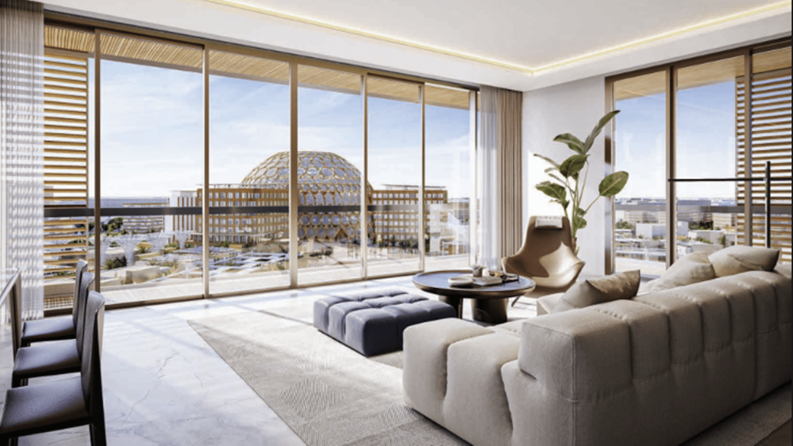 床から天井まで届く窓と、エキスポ シティの印象的な水景を見渡せる広々としたバルコニーを備えた内装で、緑豊かな中庭と感動的な建築を見渡す眺めがあります。45,000平方メートルの緑豊かな公園と緑地に囲まれた自然の中の環境にあります。
