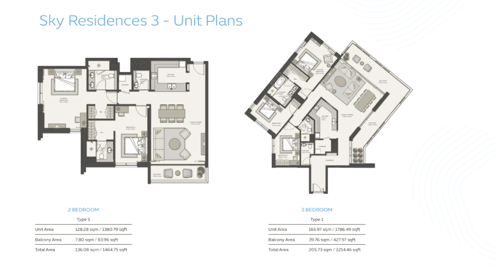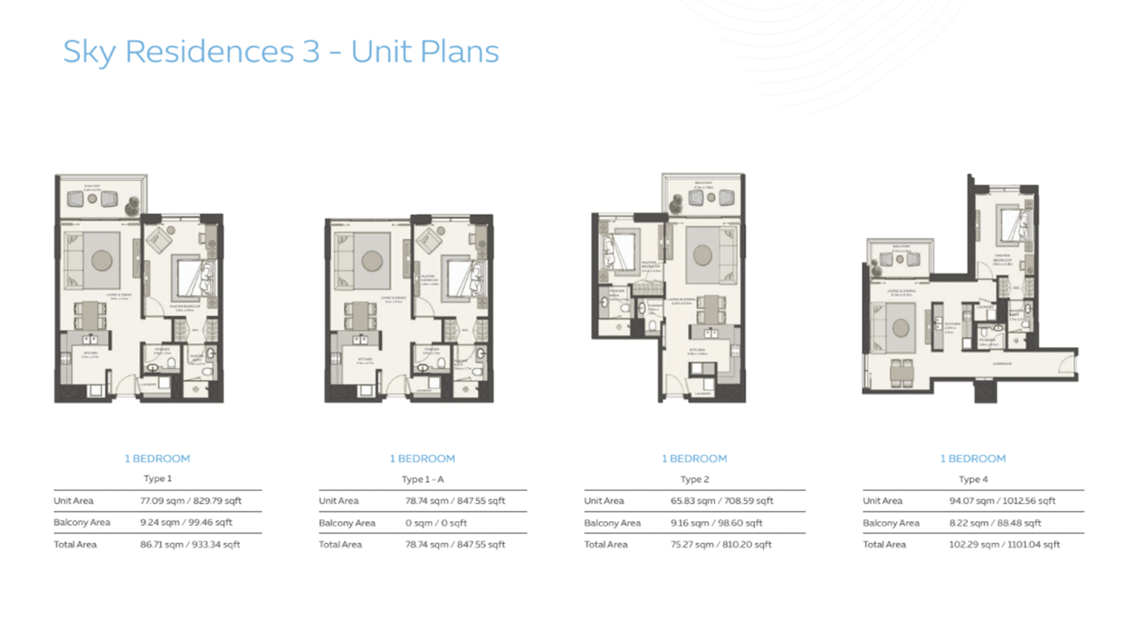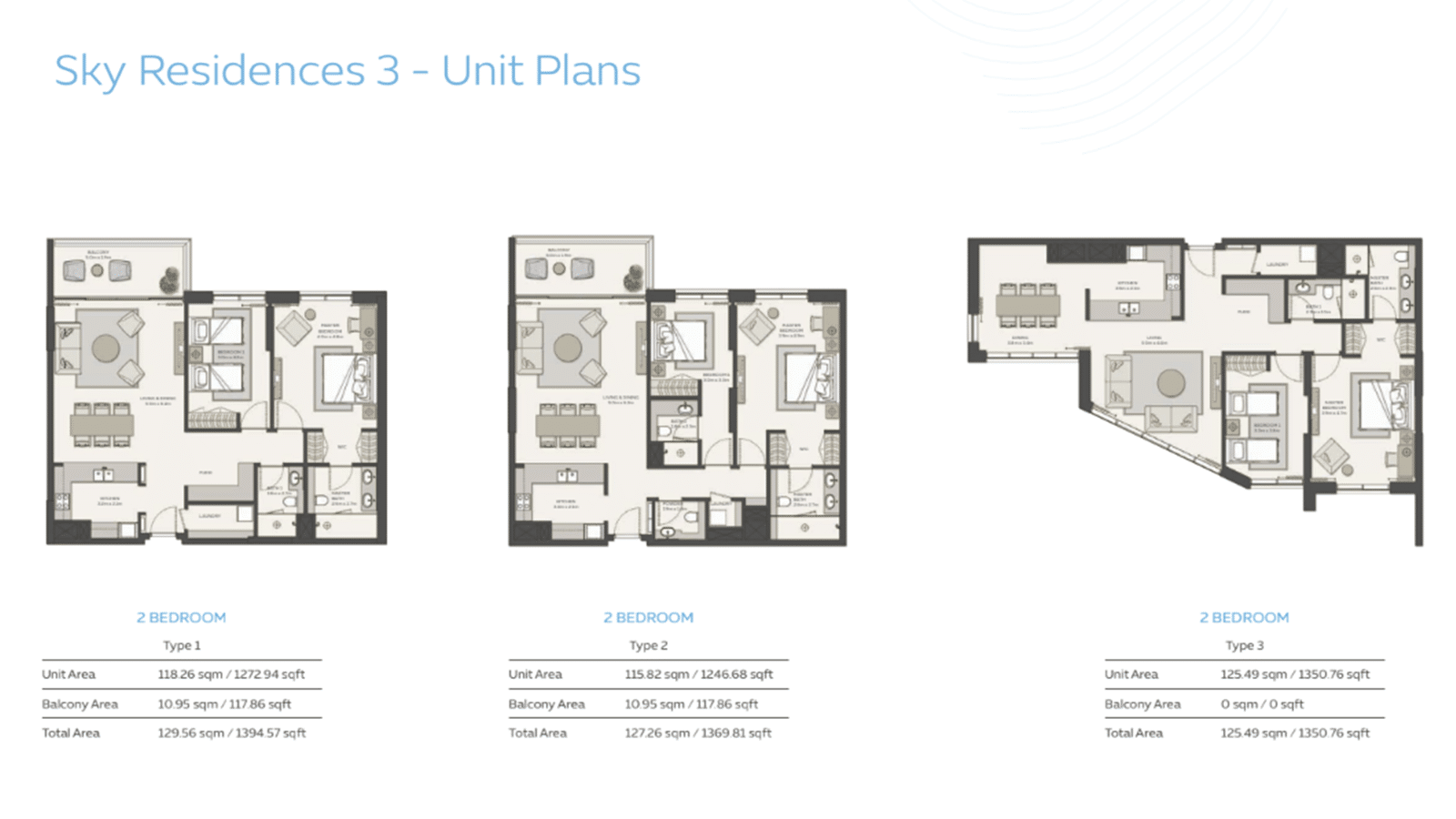 - フロアプラン 1Bed, 2Bed, 3Bed
